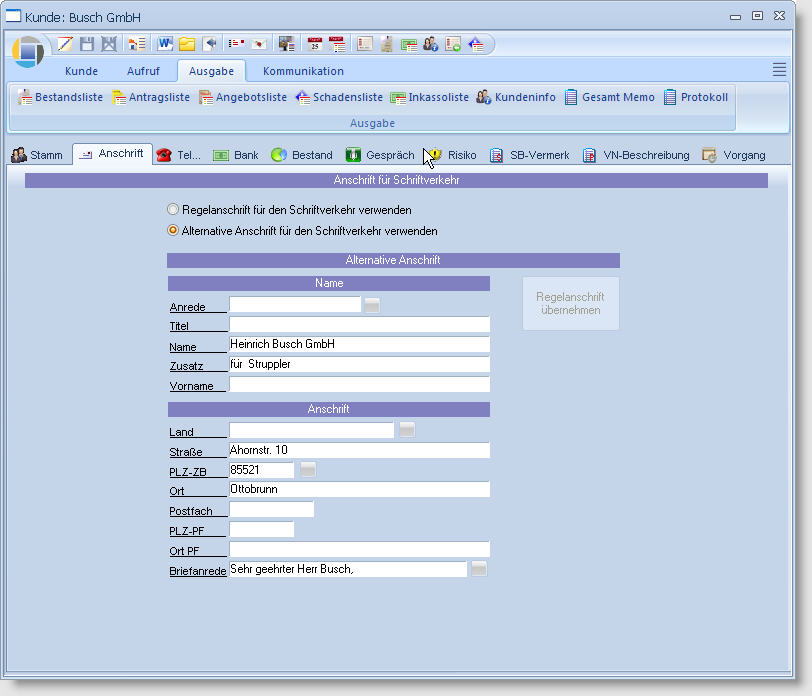 - Schriftverkehr mit Übergabe der Kundendaten