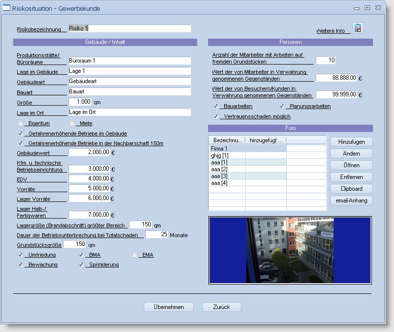 - Risikoanschrift