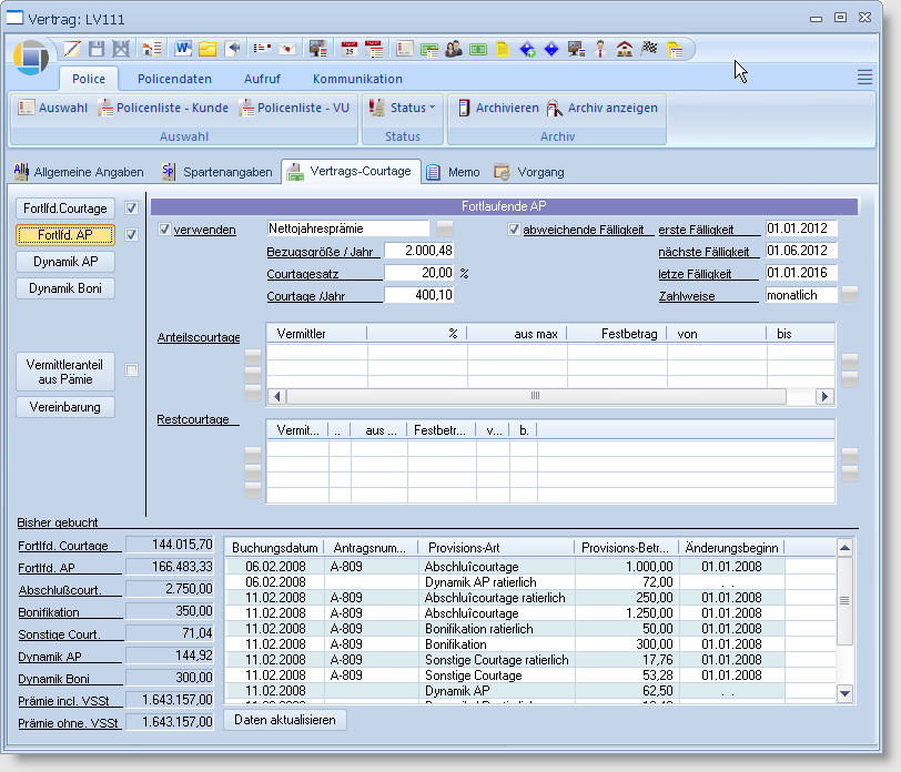 - Übernahme der Vertragsdaten bei Neuerfassung eines Vertrages