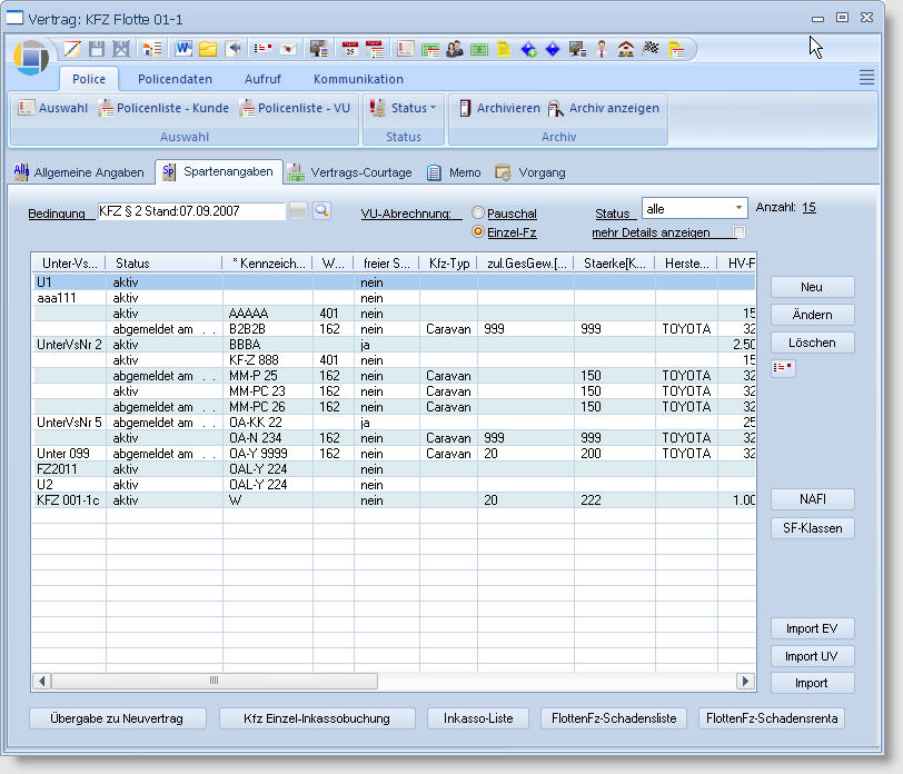 - Zuweisung von Sachbearbeiter, Vermittler und Profitcenter