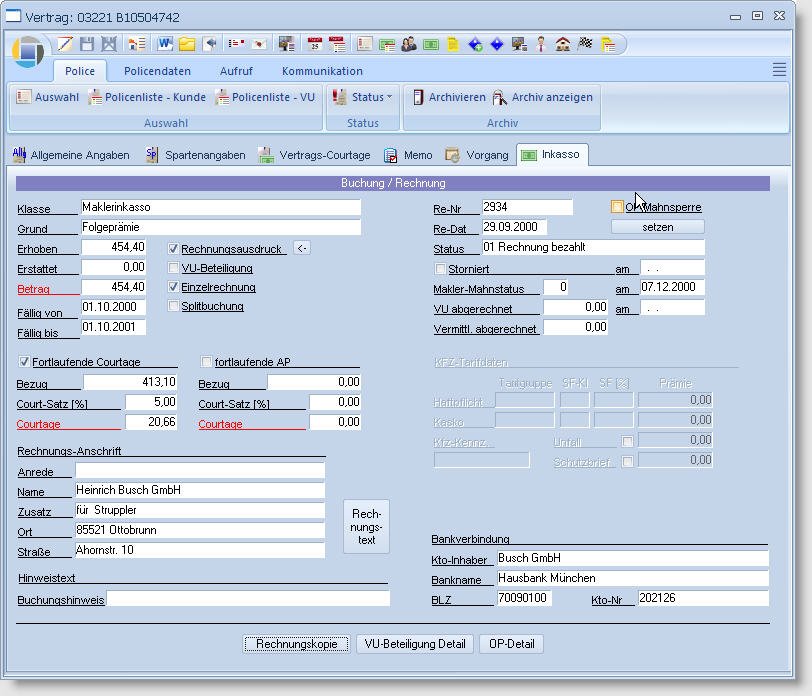- Vorgefertigte Anschreiben ( z.B.: an VU bei Änderung der Bankverbindung )