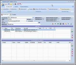 Es können beliebig viele Gesellschaften mit ebenso beliebig vielen Anschriften verwaltet werden. Bei jeder Anschrift können wiederum uneingeschränkt viele Sachbearbeiter mit allen benötigten Daten (Name, Position, Telefon, email usw.) gespeichert werden.