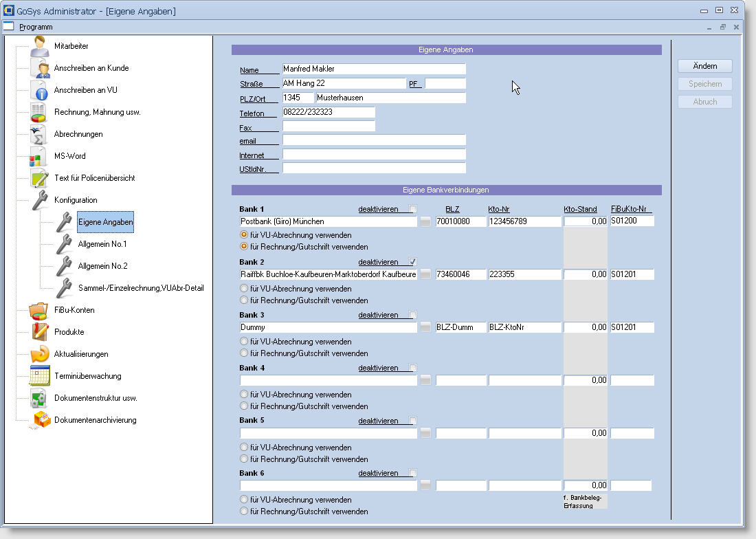 Mit Hilfe des GoSys Administrator's werden alle für die System-Konfiguration benötigte Daten erfasst und verwaltet. |