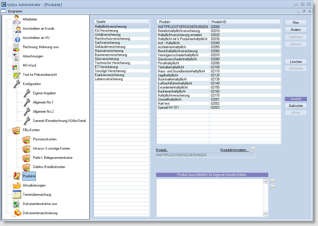 In GoSys Ultimate können pro Sparte beliebig viele Produkte definiert werden. Zu jedem Produkt kann eine Produktinformation hinterlegt werden die z.B. im Beratungsprotokoll verwendet werden kann. |