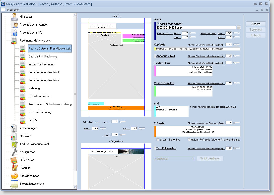 Alle in GoSys Ultimate verwendeten Dokumentenvorlagen werden im GoSys Administrator verwaltet: Detail |