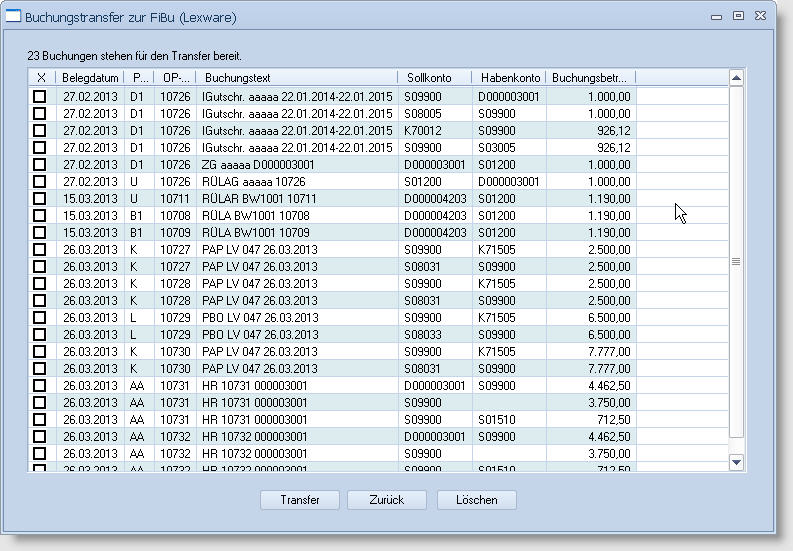 Buchungsvorgänge die in GoSys Ultimate generiert wurden, können über den Buchungstransfer zu externe FiBu-Programme übertragen werden |